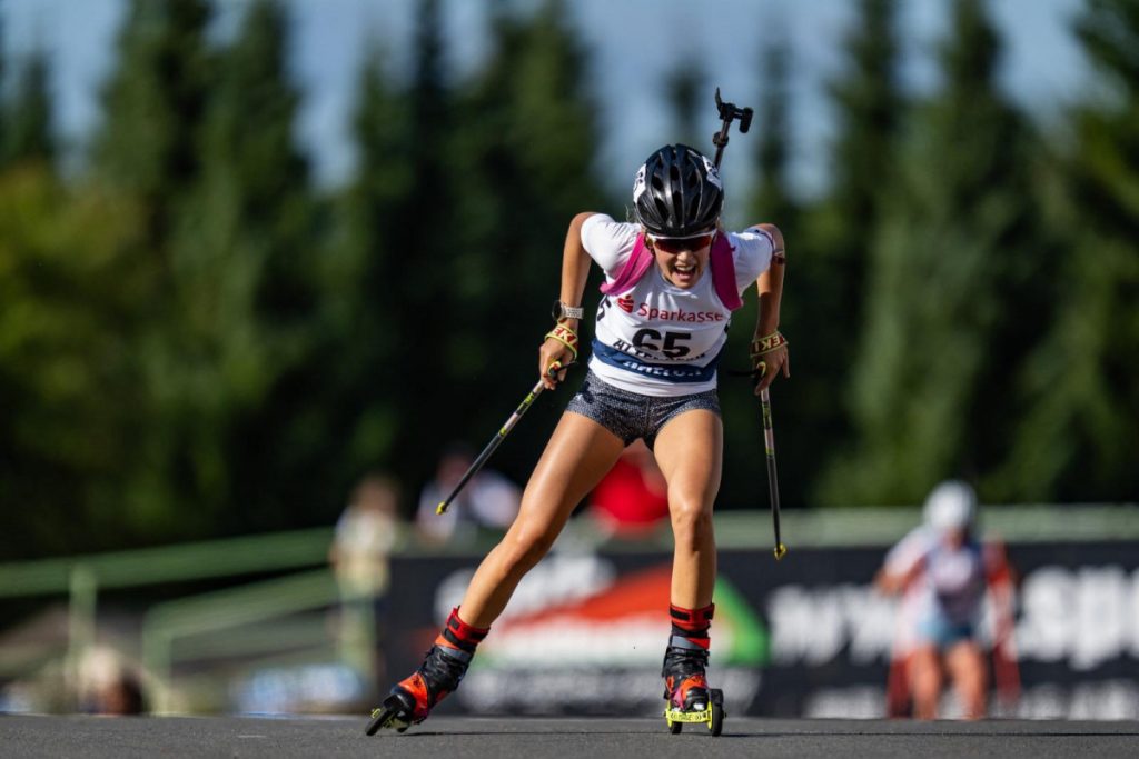 Gleich zum Auftakt des dreitägigen Wettkampfprogramms im Osterzgebirge zeigte Antonia Wallner eine herausragende Leistung sowohl auf Skirollern als auch am Schießstand. Auf den selektiven schwierigen Strecken überzeugte die siebzehnjährige mit starker Laufzeit und nur einem Schießfehler im liegenden Anschlag (1/0). Damit setzte sie sich gegen Bianca Schuh vom DAV Ulm, die ohne Fehler blieb und Anna Thaurer ebenfalls mit einem Schießfehler (1/0) vom Stützpunkt Ruhpolding durch. „Das war ein Riesenerfolg für Antonia. Sie hat gezeigt, dass sie auf diesem Niveau absolut konkurrenzfähig ist und vor allem laufmäßig voll dabei ist“, lobte Trainer Jürgen Wallner. „Die, Altersklasse der Jahrgänge 2007 und 2008 ist eine sehr starke, homogene Klasse bei der 15 Sportlerinnen um das Podest kämpfen können, wenn alles passt.“